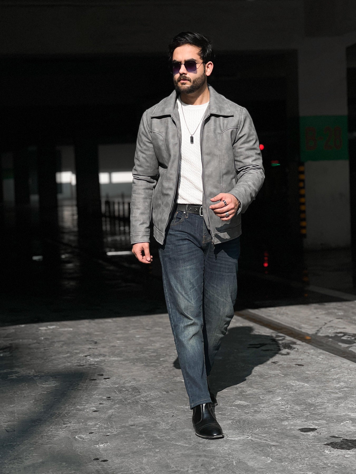 NETFLIX STYLE GREY IMPORTED LEATHER JACKET
